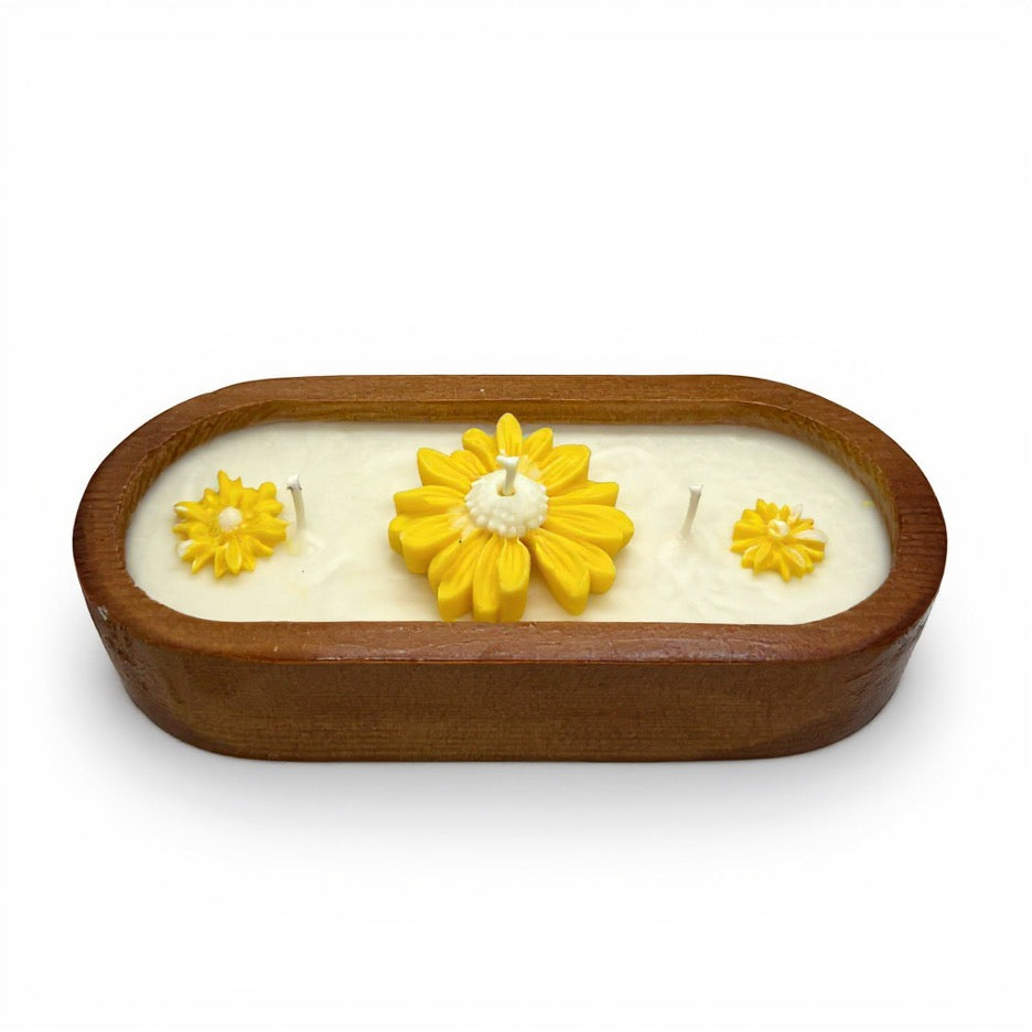 A smooth round wooden pot candle with a warm, rustic finish ideal for cozy spaces.